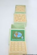 Cada jabón viene empaquetado individualmente en caja decorativa de vistosos colores reutilizable para diversos usos, realizada con cartón reciclado.